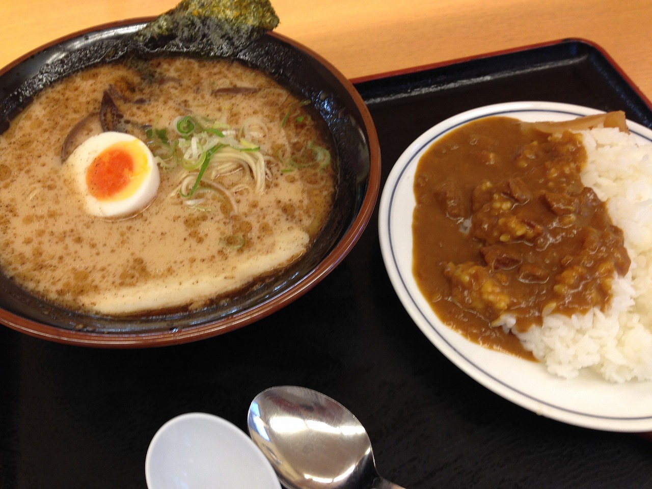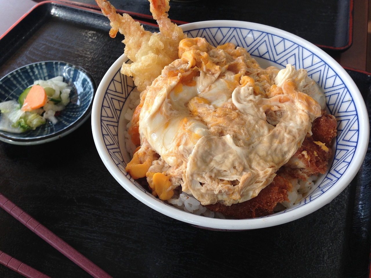 もう贅沢!エビ天2本にトンカツのフュージョン。